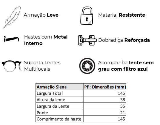 Material: Acetato (Robusto, resistente e com ótimo acabamento visual)